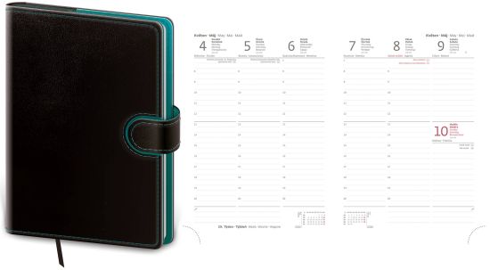 Diář Flip, týdenní, A5, koženka, černý/ petrolejový