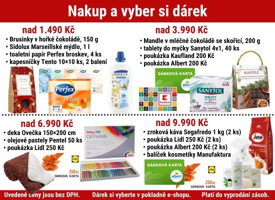 Akce se vztahují na koncové nesmluvní zákazníky. Akce se nevztahuje na zboží z kategorie výpočetní technika a papír v akci. Změna vyhrazena.