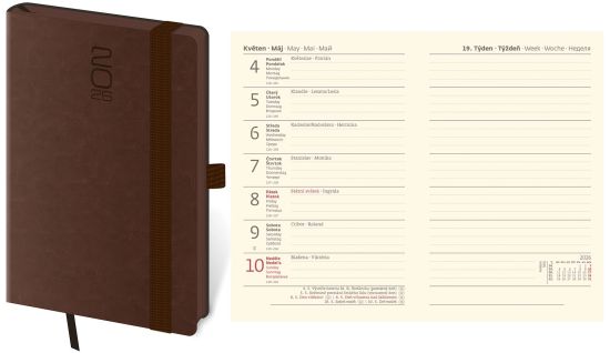 Diář Memory, týdenní, kapesní s gumičkou, tmavý hnědý 2026