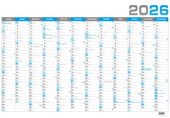 Nástěnný kalendář, roční, modrý 2026